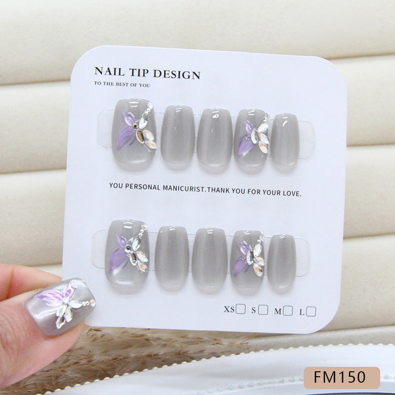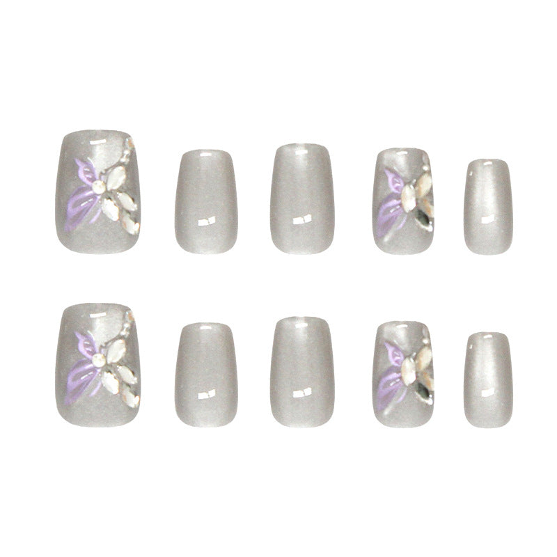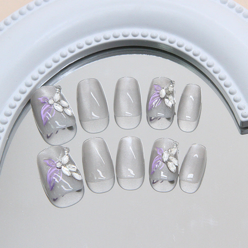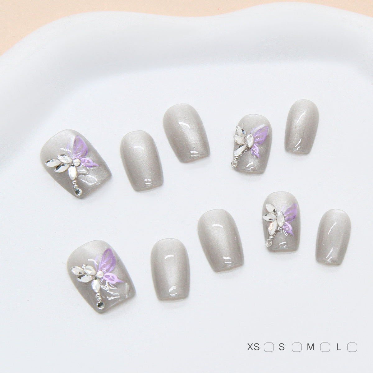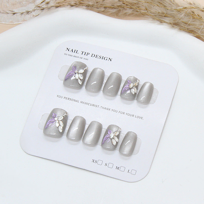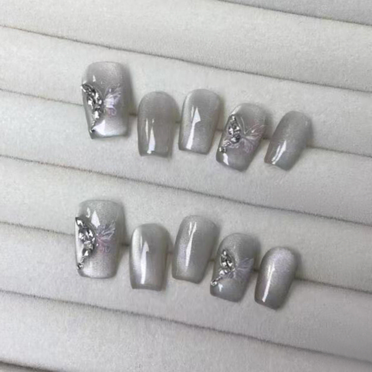 3D Diamond Butterfly Cat Eye(Handmade press on nails)/10Pcs Squoval Nails