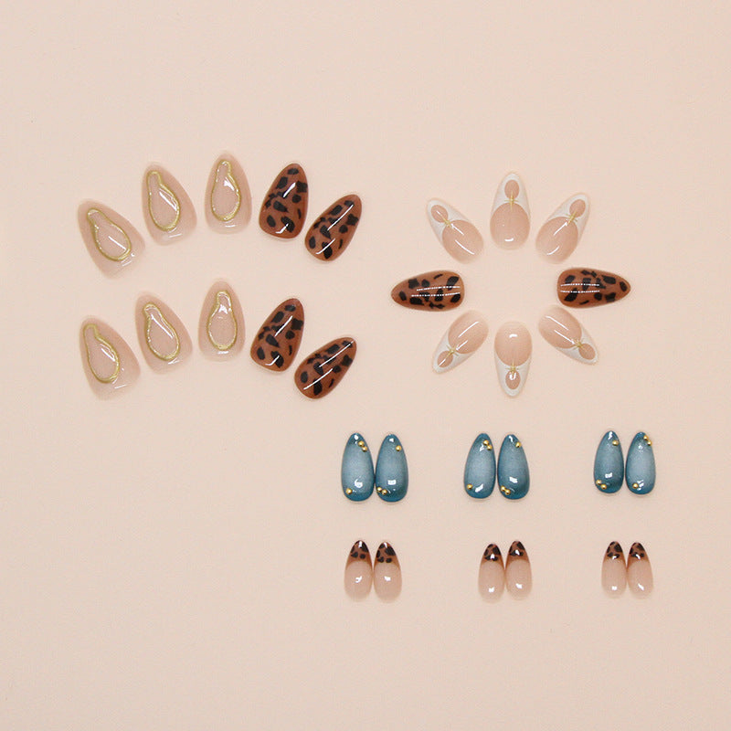 3D Leopard Print Nude Press on Nails 24Pcs Short Almond Nails