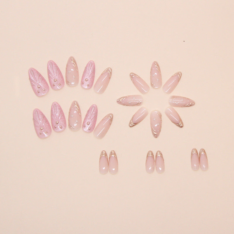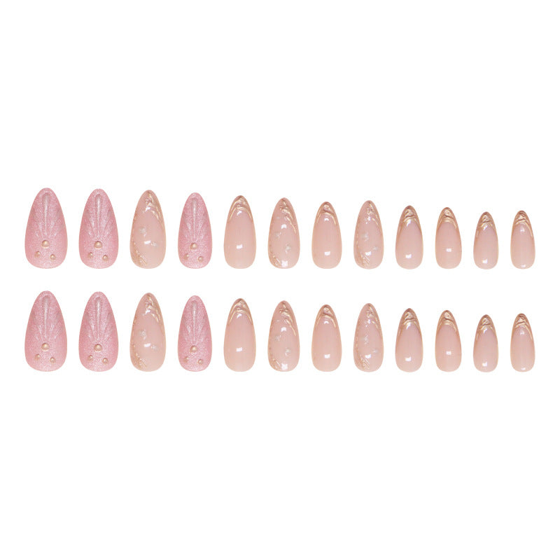 3D shell golden lines Pink Press on Nails 24Pcs Medium Almond Nails