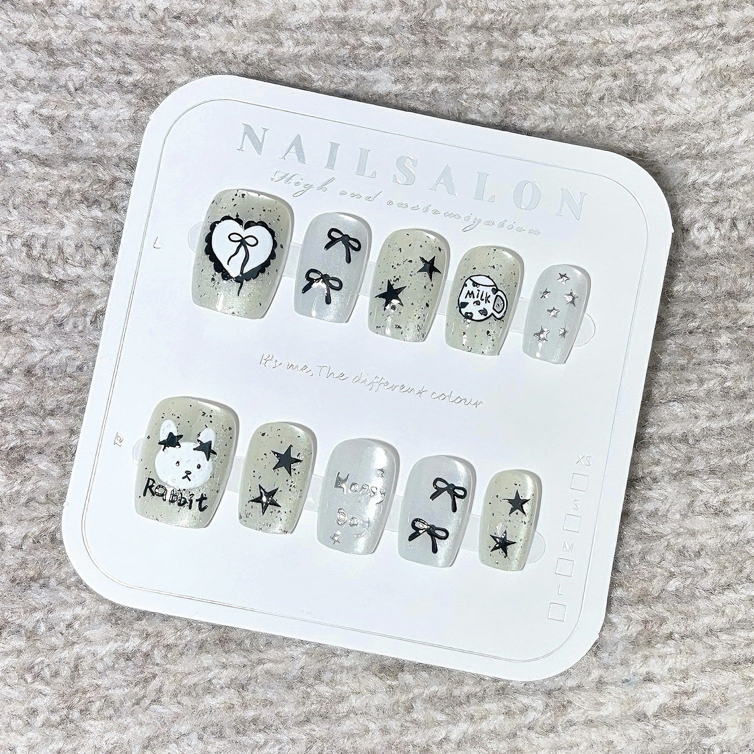 Bow Bunny Cat Eye(Handmade press on nails)/10Pcs Squoval Nails