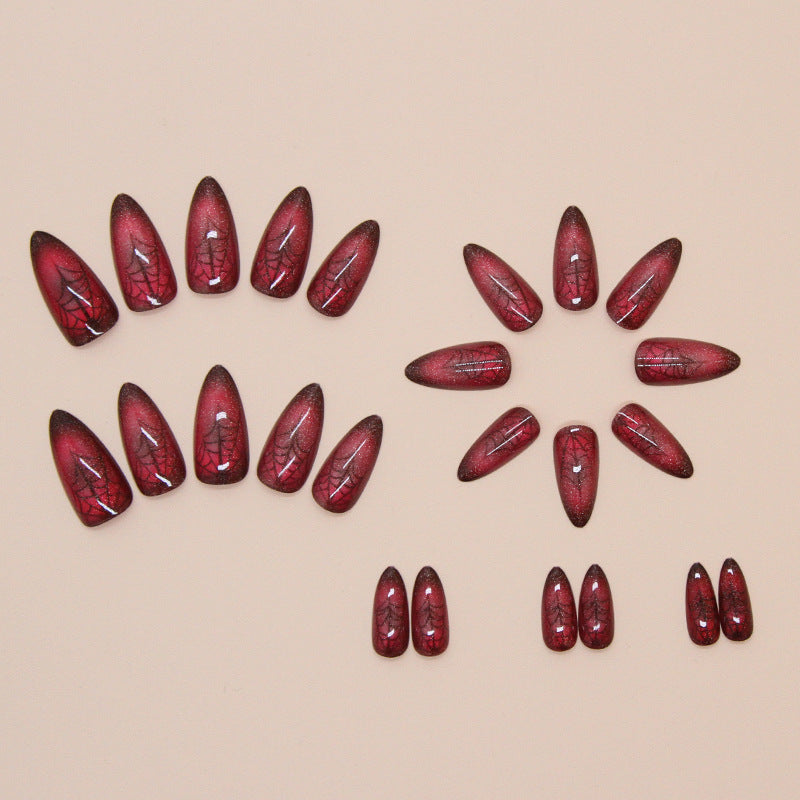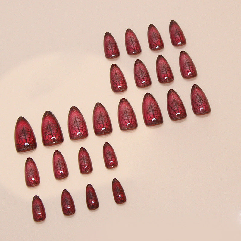 Cat Eye Spider Web Press on Nails 24Pcs Medium Almond Nails