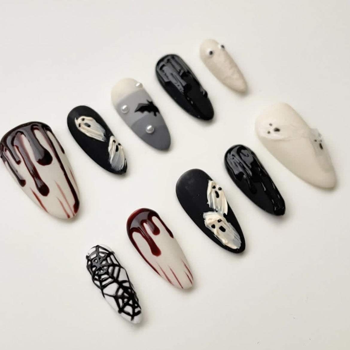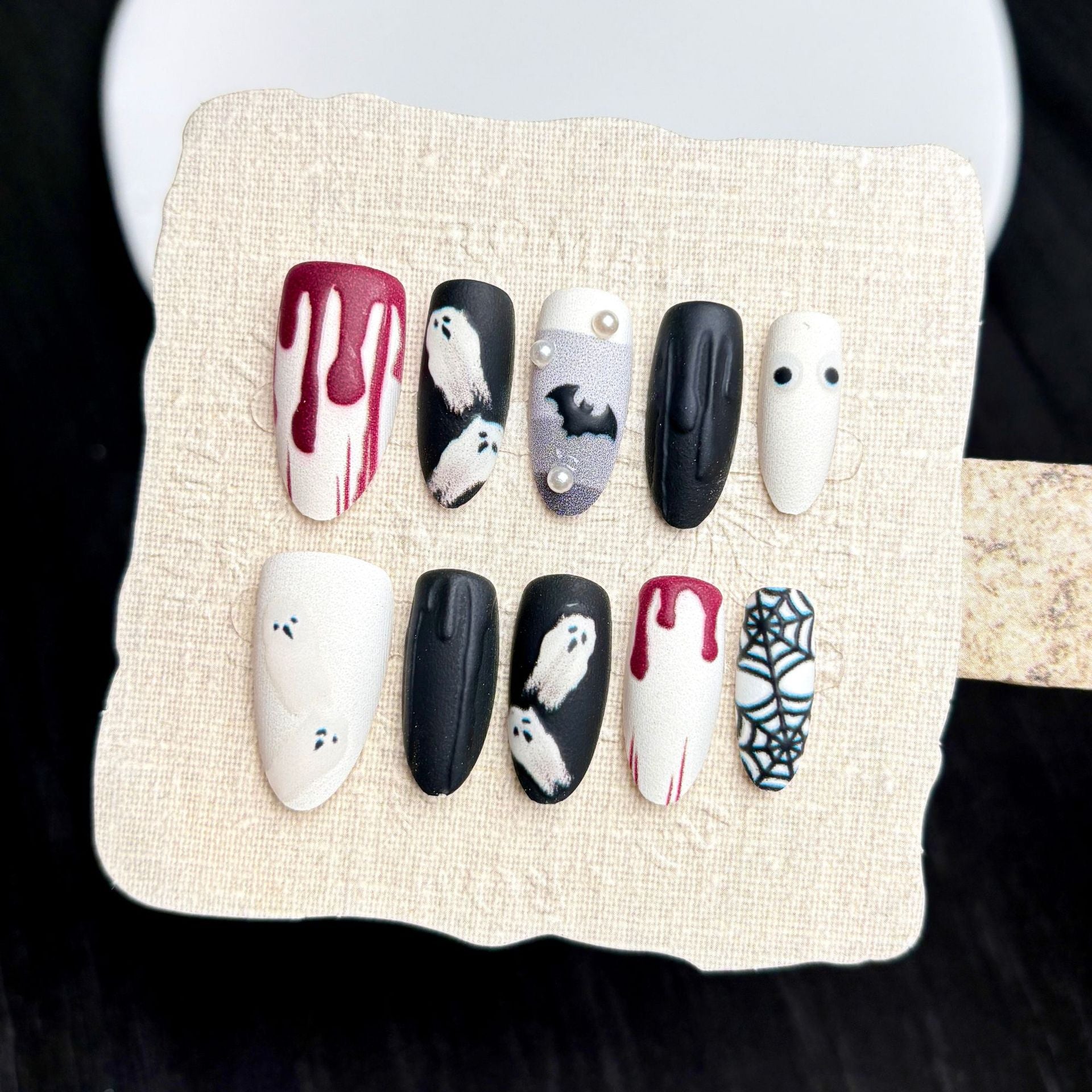 Frosted Ghost Bat(Handmade press on nails)/10Pcs Almond Nails