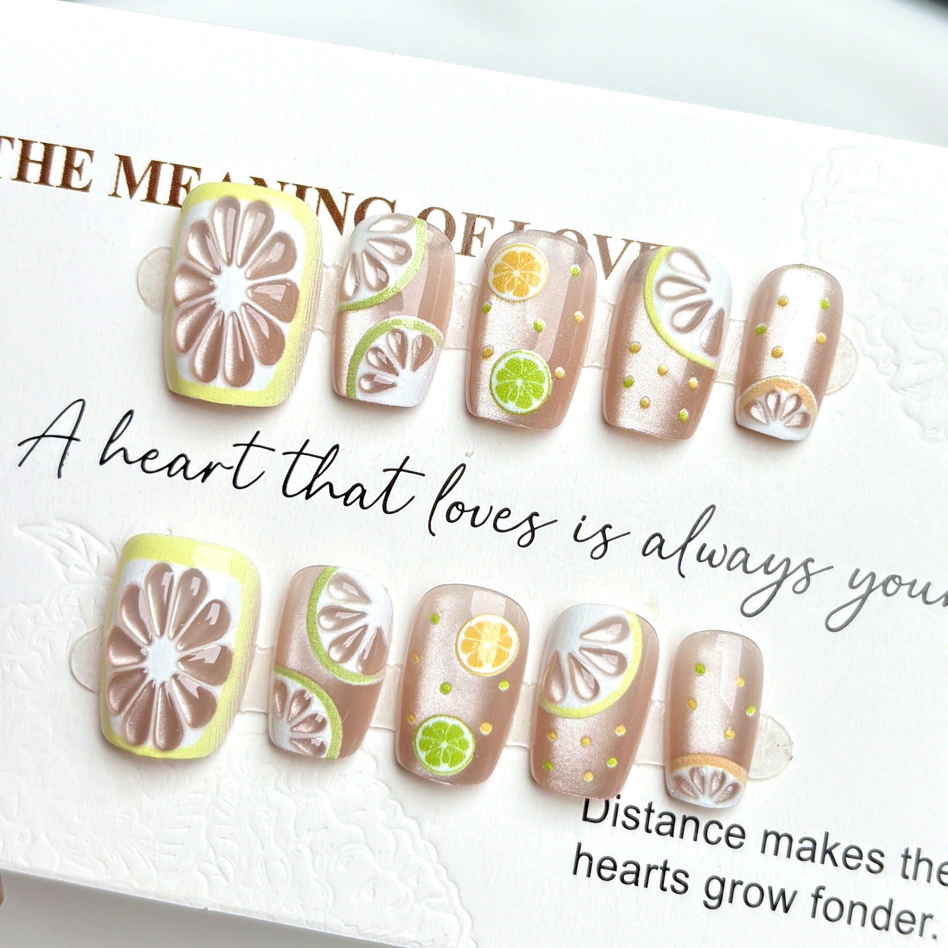 Lemon Bubble Water Cat Eye(Handmade press on nails)/10Pcs Square Nails