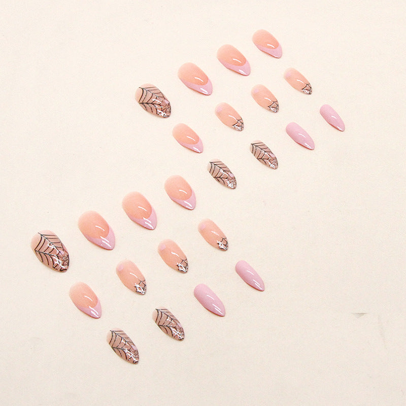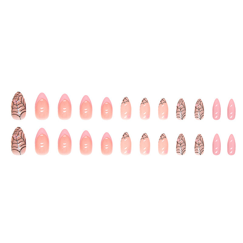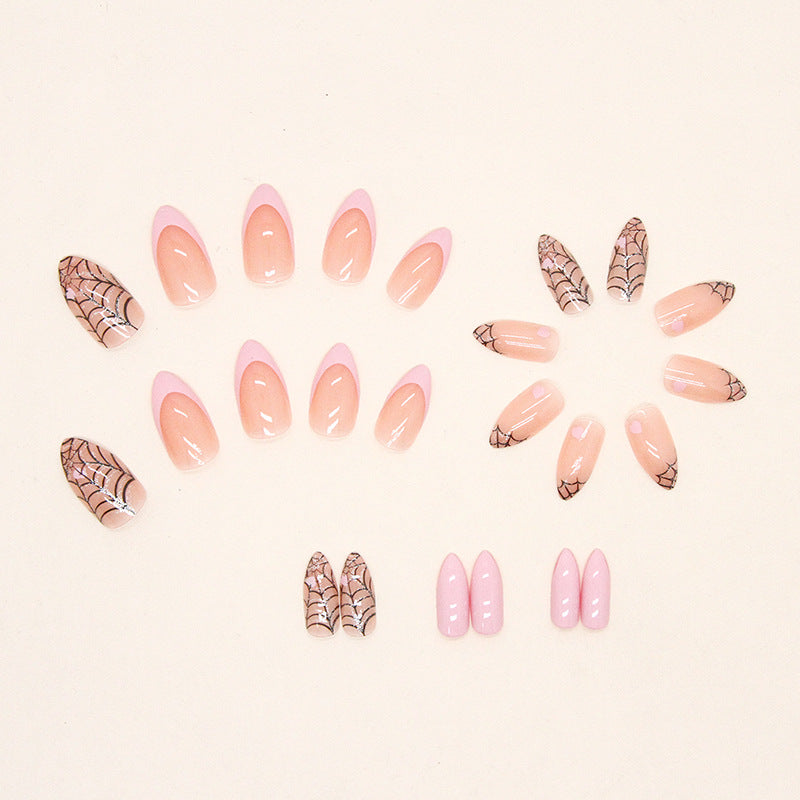 Love Spider Web Press on Nails 24Pcs Medium Almond Nails