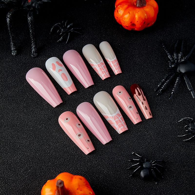 Pink Ghost Press on Nails 24Pcs Long Ballerina Nails