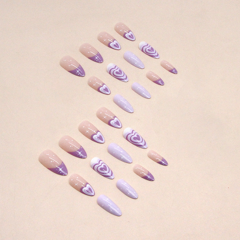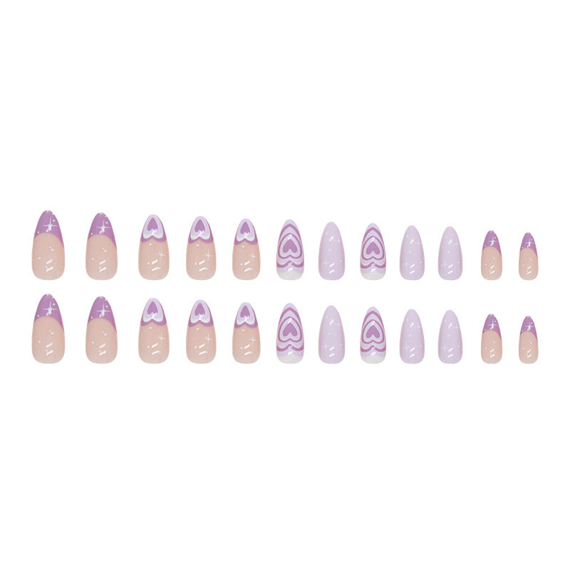 Purple Love Press on Nails 24Pcs Medium Almond Nails