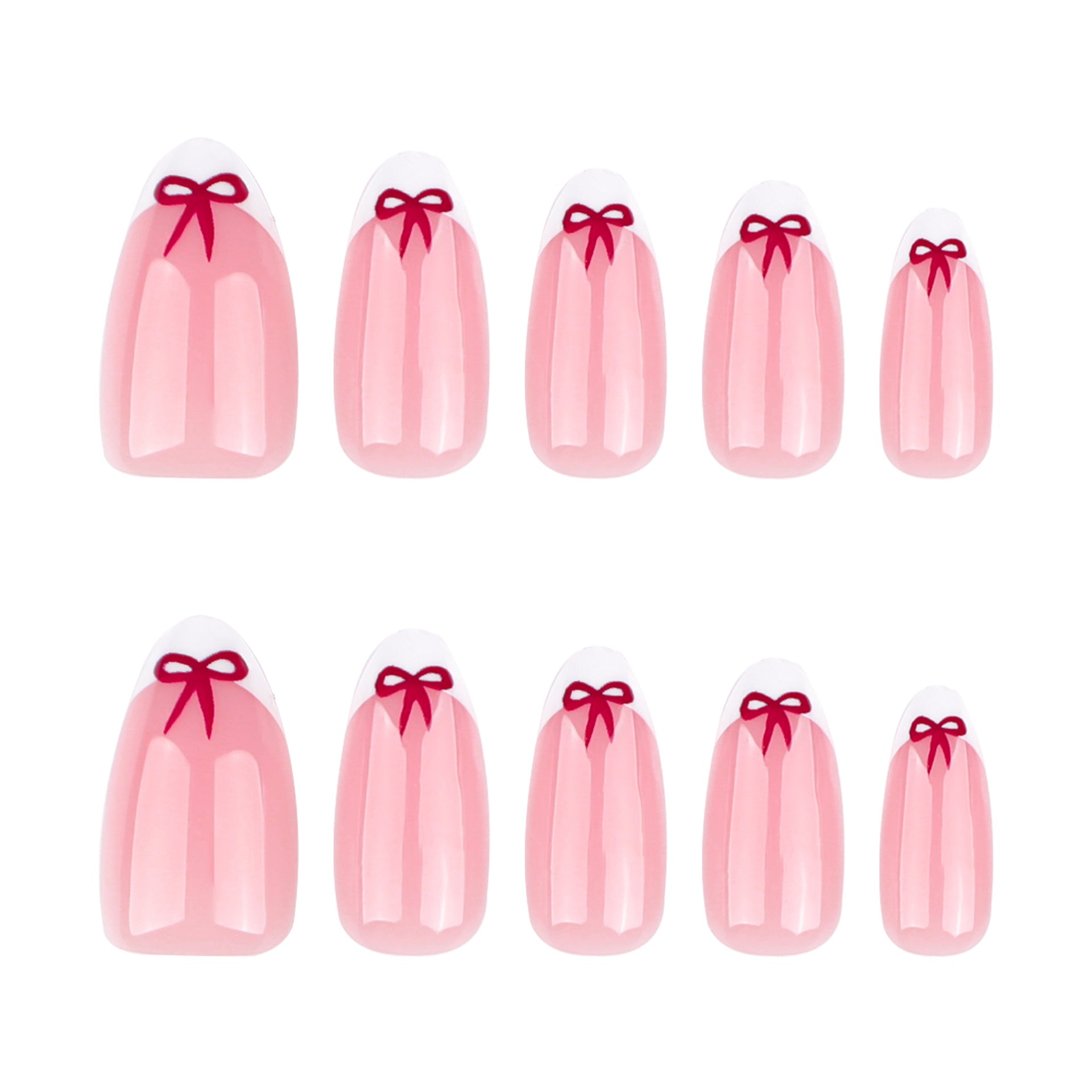 Simple French Bow Press on Nails 24Pcs Short Almond Nails