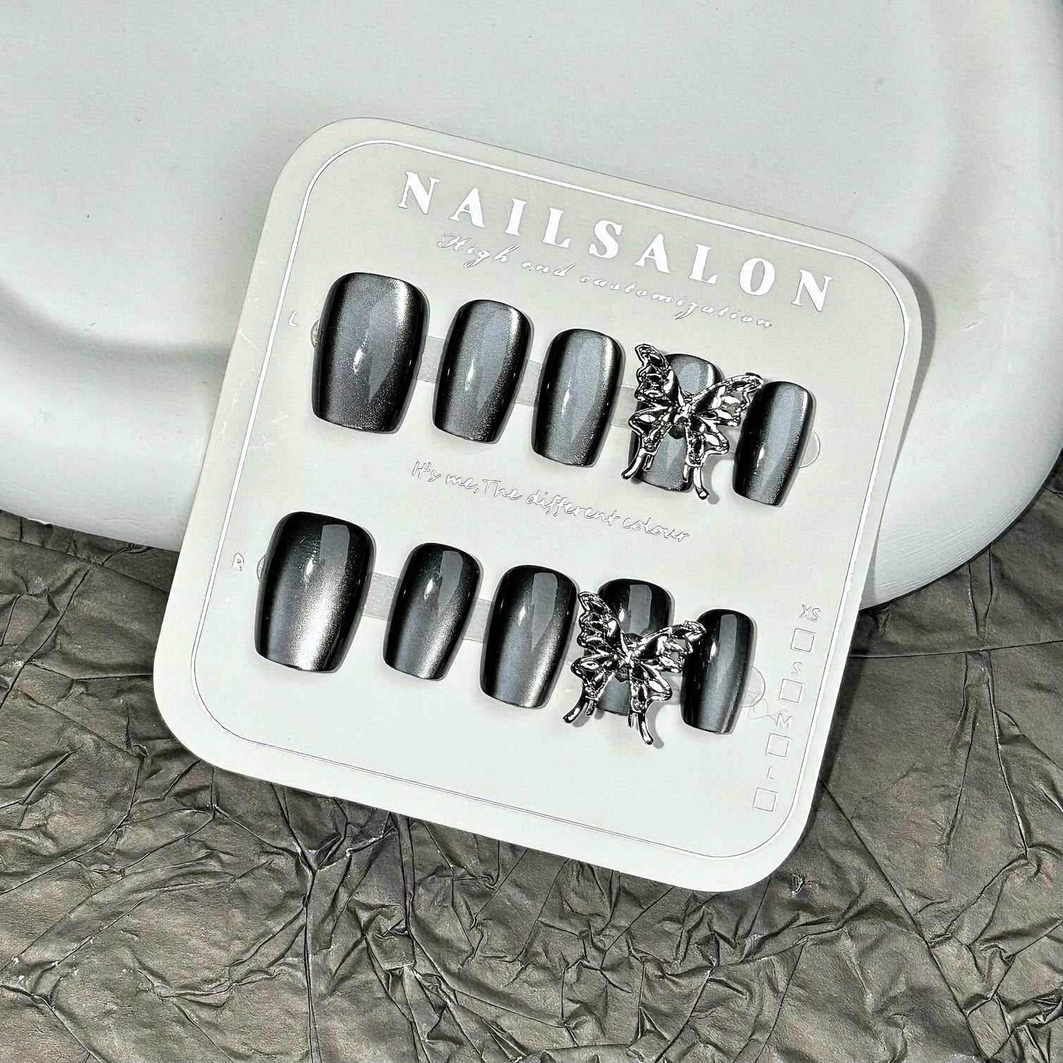 Y2K Black 3D Butterfly Cat Eye(Handmade press on nails)/10Pcs Squoval Nails