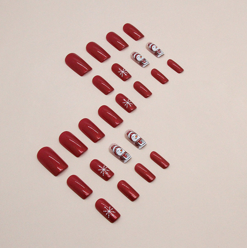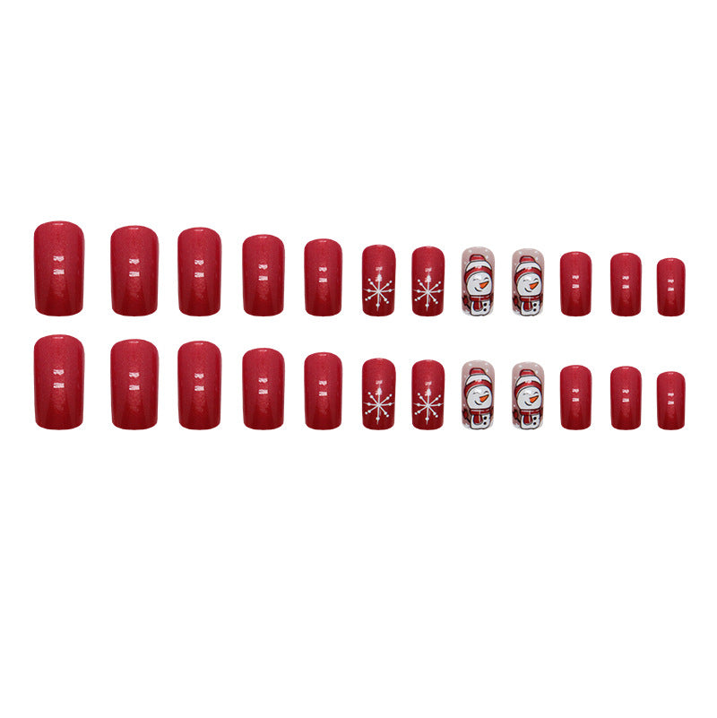 Aurora Red Snowman Press on Nails 24Pcs Medium Squoval Nails