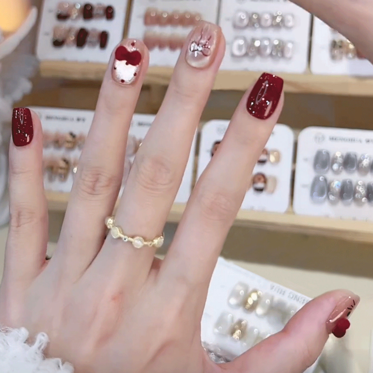 Bow Polka Dot Kitty Cat Eye(Handmade press on nails)/10Pcs Squoval Nails