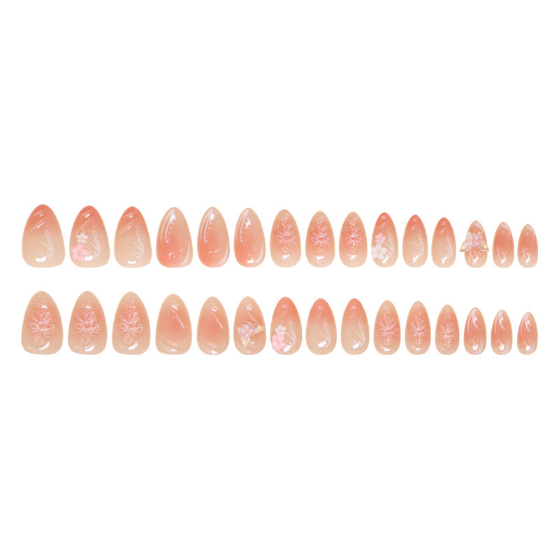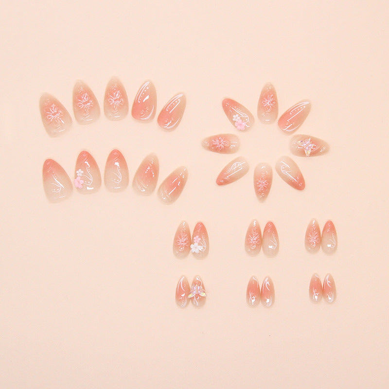 Butterfly 3D flower Pink Press on Nails 24Pcs Short Almond Nails