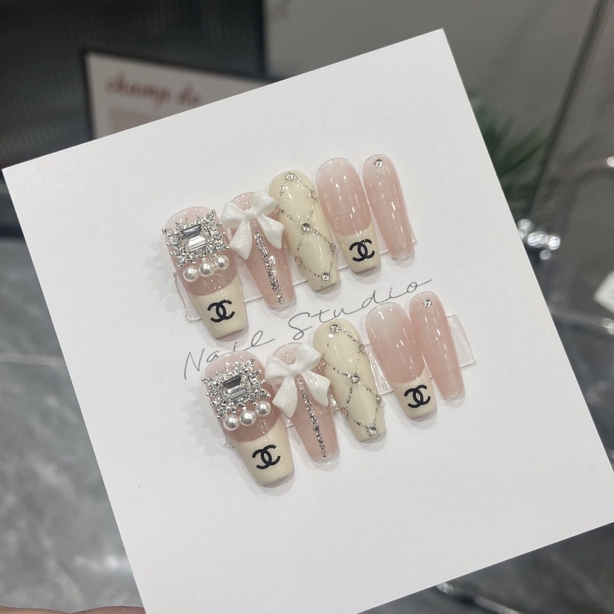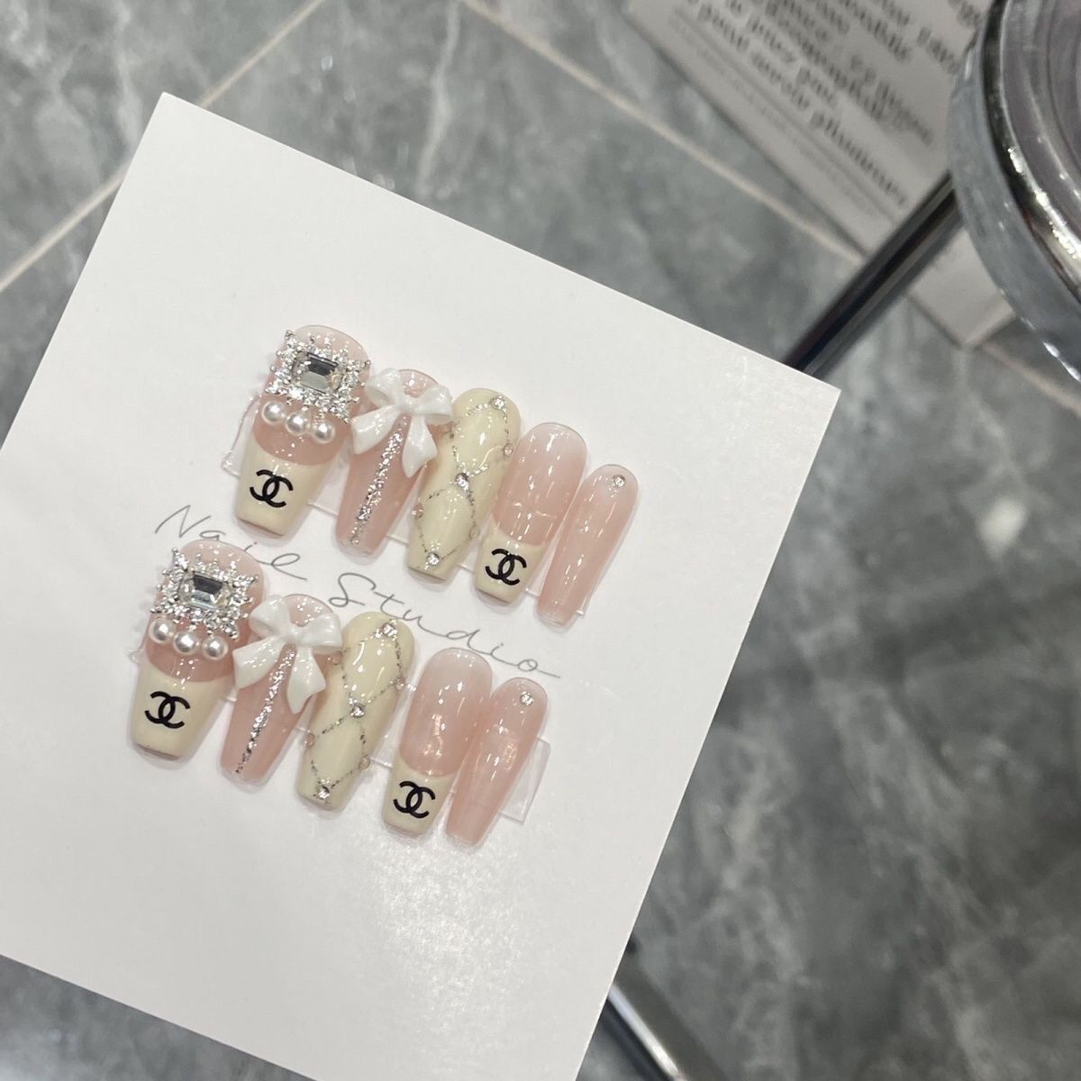 Chanel Bow(Handmade Custom Nails)/10Pcs Balerina Nails