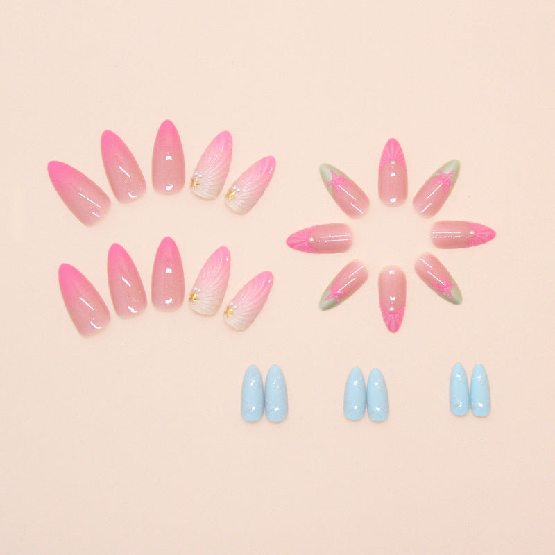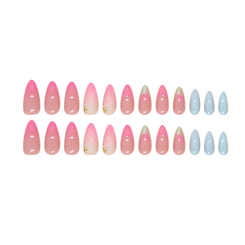 Colorful 3D seashells Summer Press on Nails 24Pcs Medium Almond Nails