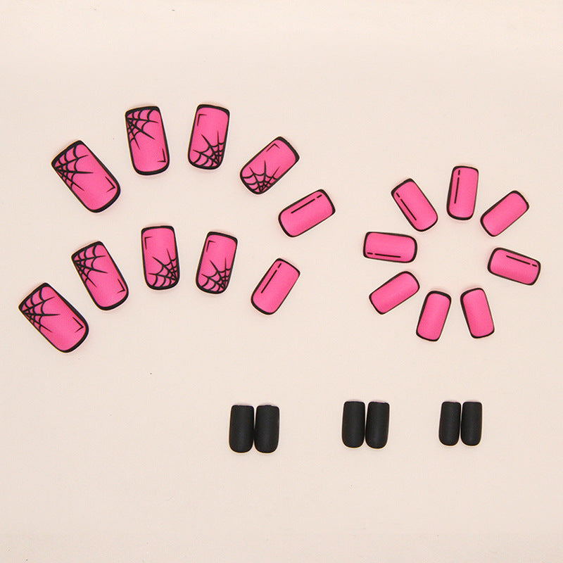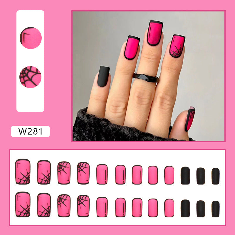 Comic Spider Web Press on Nails 24Pcs Medium Squoval Nails
