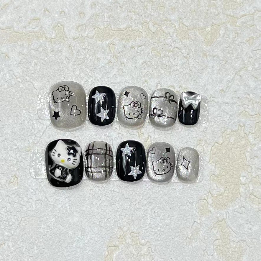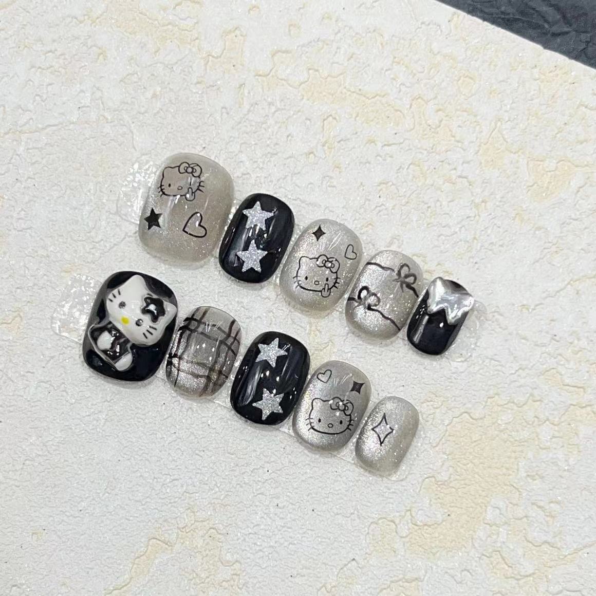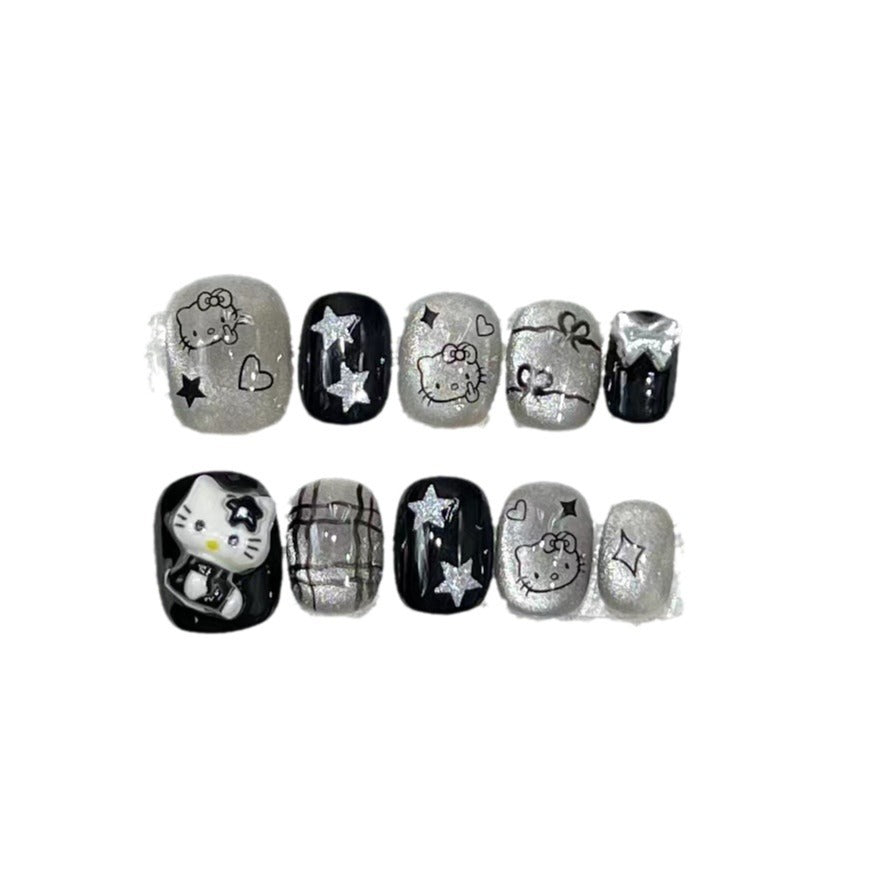 Dark Kitty Cat Eye Handmade press on Nails / 10Pcs Squoval Nails