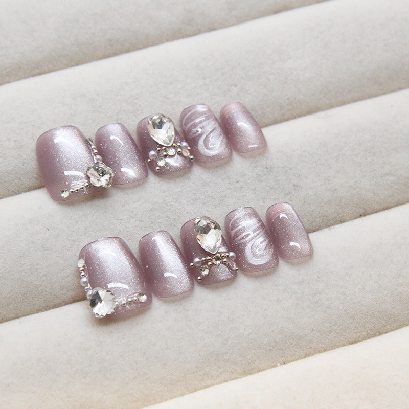 Diamond Swan Cat Eye Gradient(Handmade press on nails)/10Pcs Squoval Nails