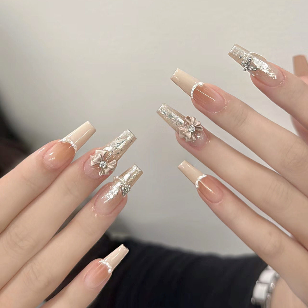 French Bow Manicure(Handmade Custom Nails)/10Pcs Balerina Nails