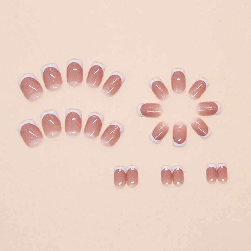 French Fine Glitter Pink Press on Nails 24Pcs Medium Squoval Nails