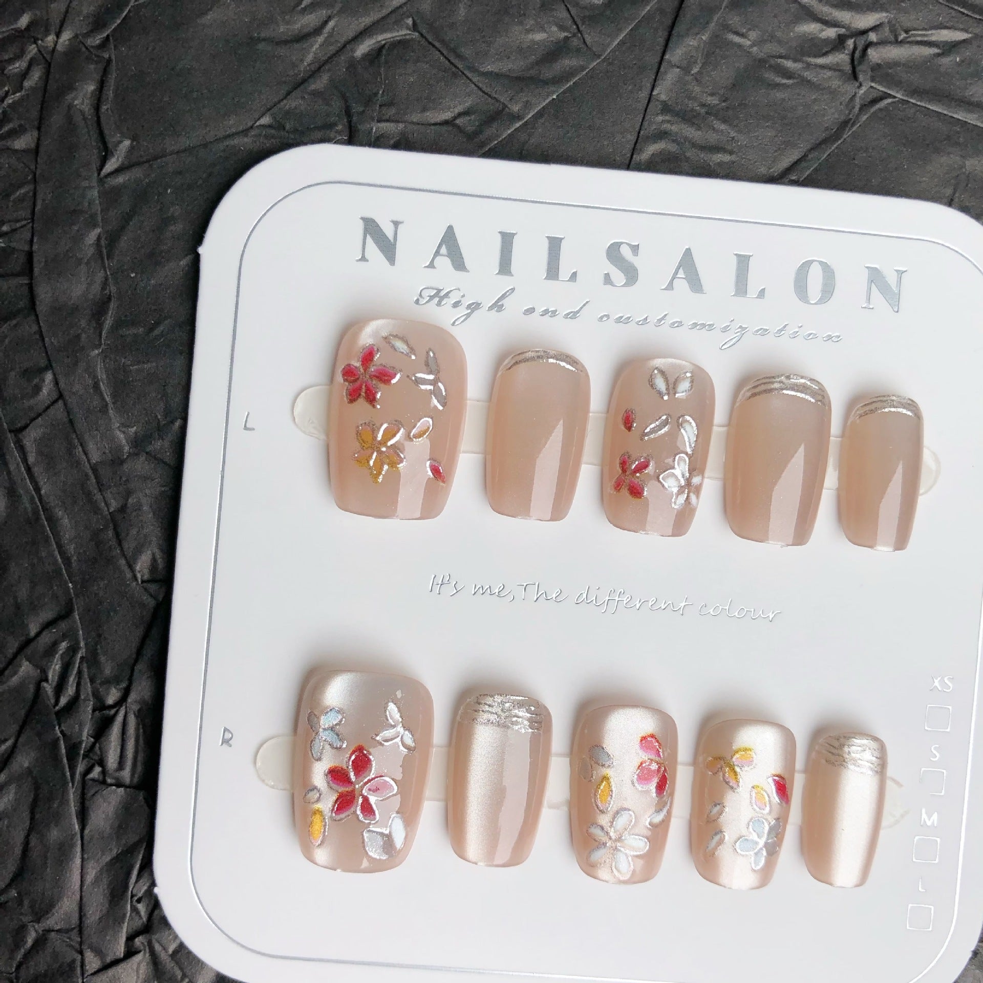 Gilded Colored Flowers Cat Eye(Handmade press on nails)