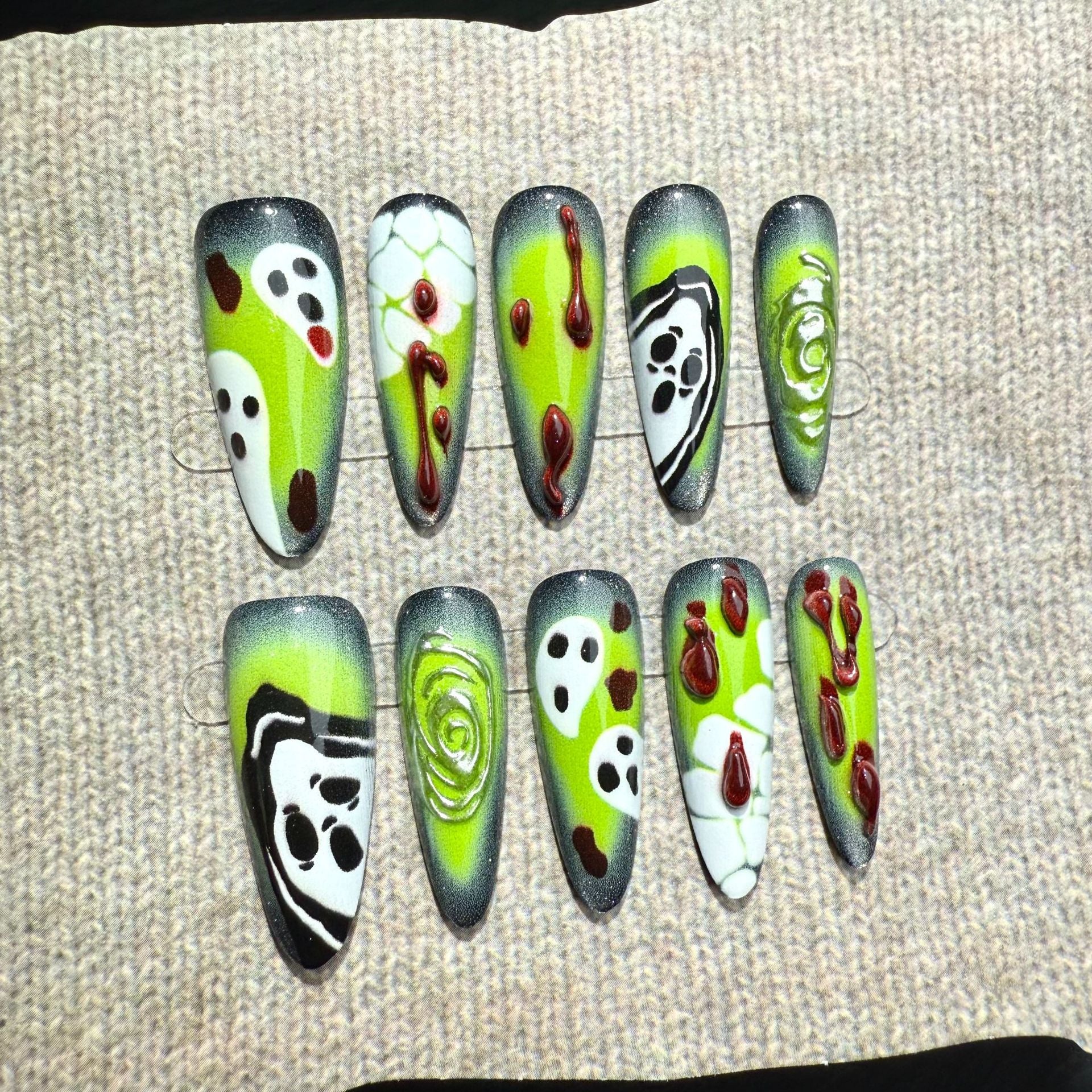 Halloween Party(Handmade press on nails)/10Pcs Stiletto Nails