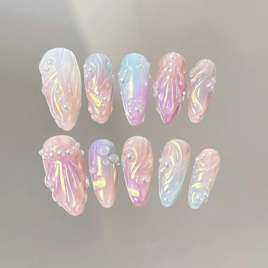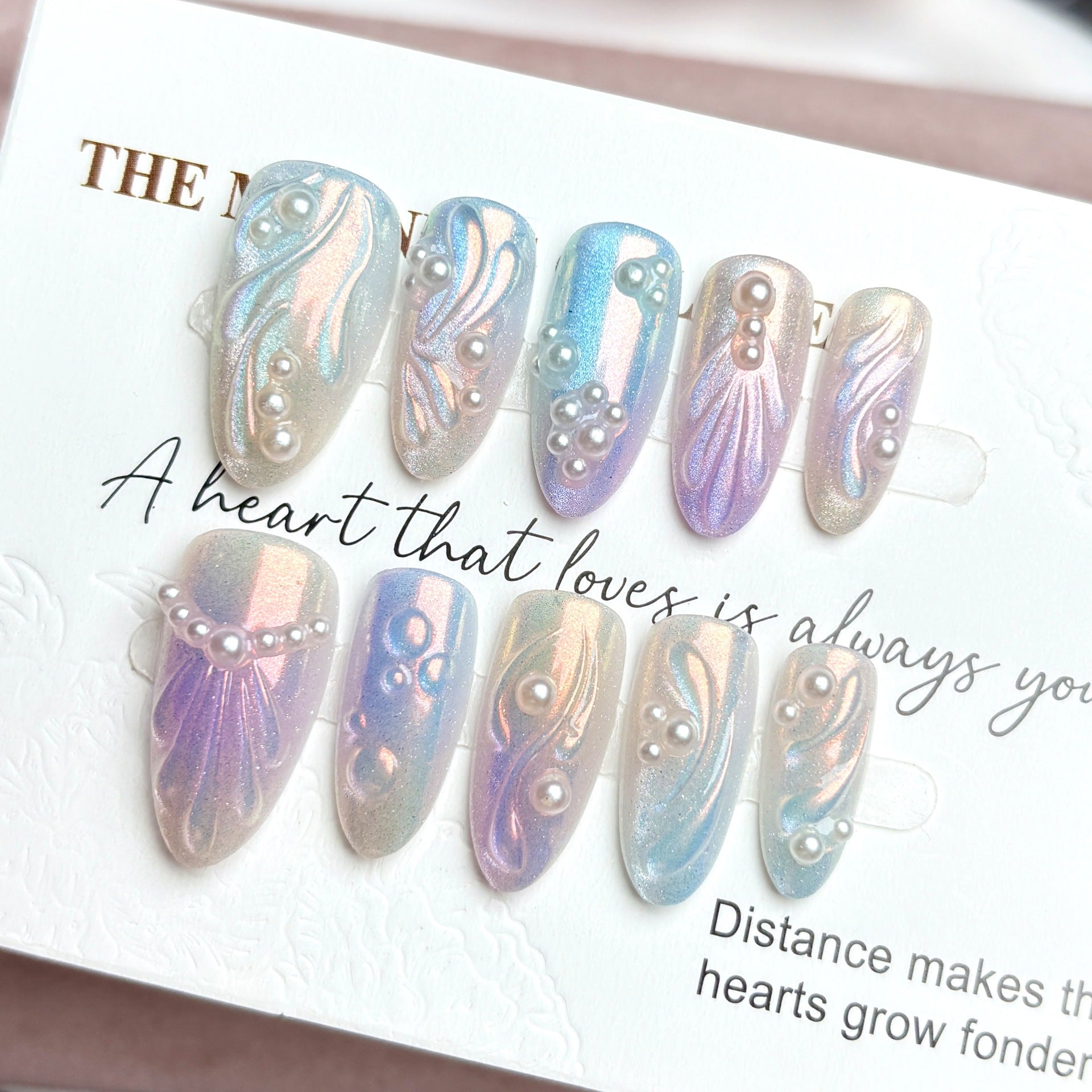 Mermaid Aurora Pearl(Handmade press on nails)/10Pcs Almond Nails