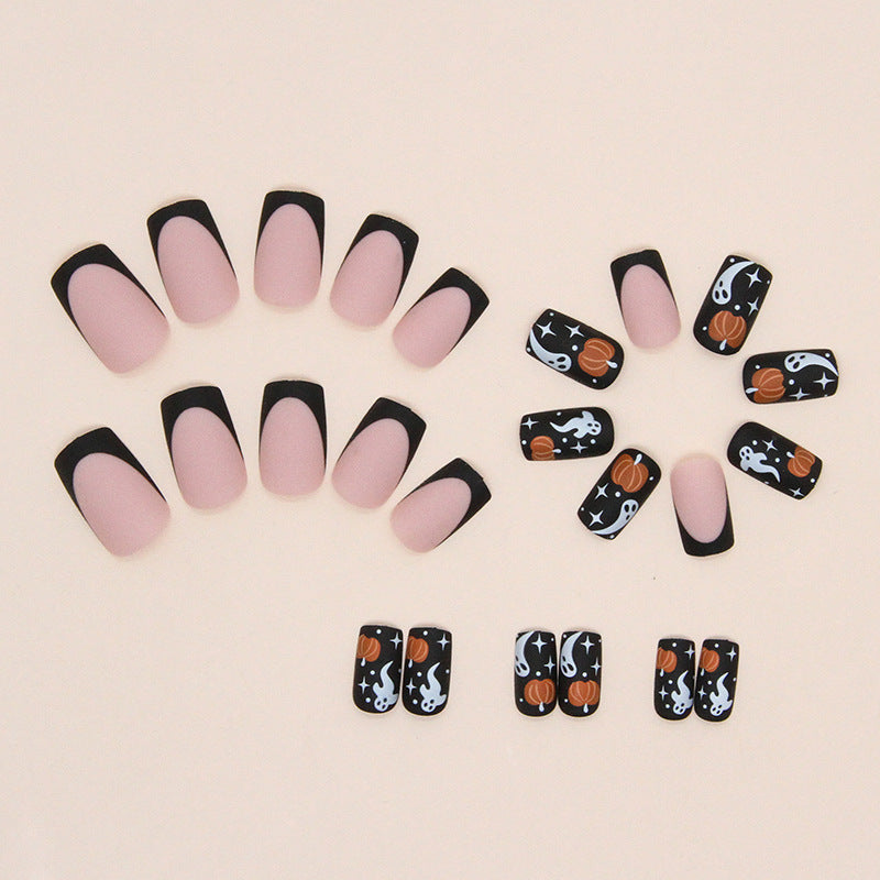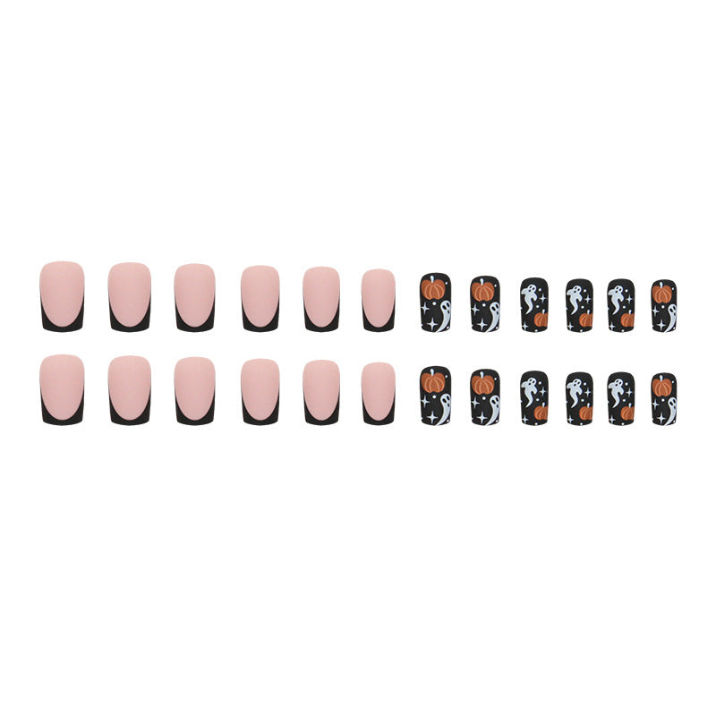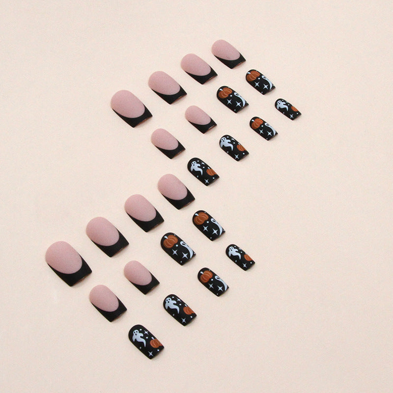 Pumpkin Ghost Press on Nails 24Pcs Medium Squoval Nails