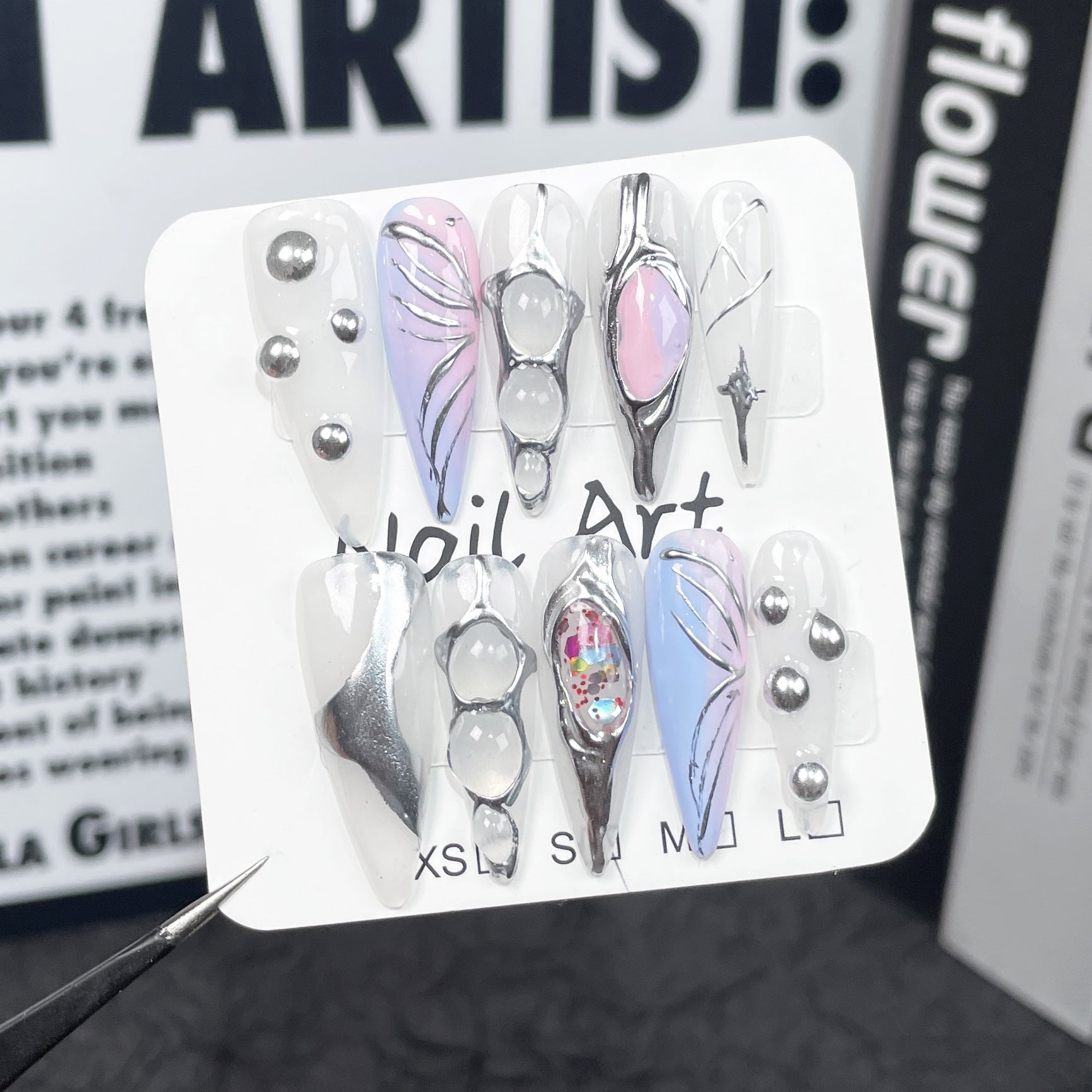 I ordered for my birthday and my package was so beautiful! My requests were taken into consideration, she was wonderful to deal with when I had a sizing issue- great customer service! All of the nails were beautiful and I couldn't wait to get a pair on the second I got my package lol considering it came from overseas, shipping was quick like 11 days... so what are you waiting for, click off of my review already and just ORDER FROM STARRY CAT 💜🫶🏻💜 you won't regret it 🥰