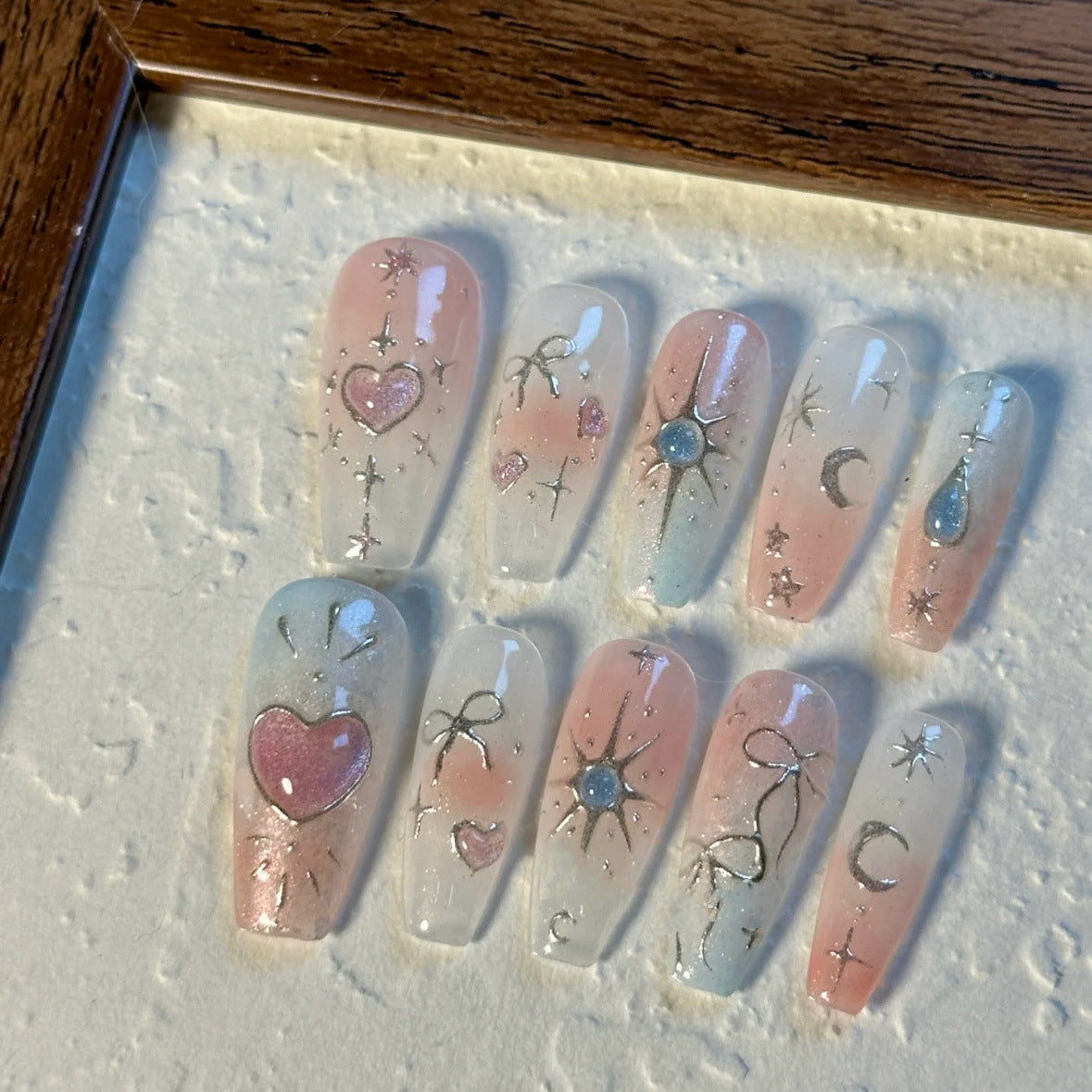 Rococo Magical Girl Cat Eye(Handmade press on nails)/10Pcs Ballerina Nails
