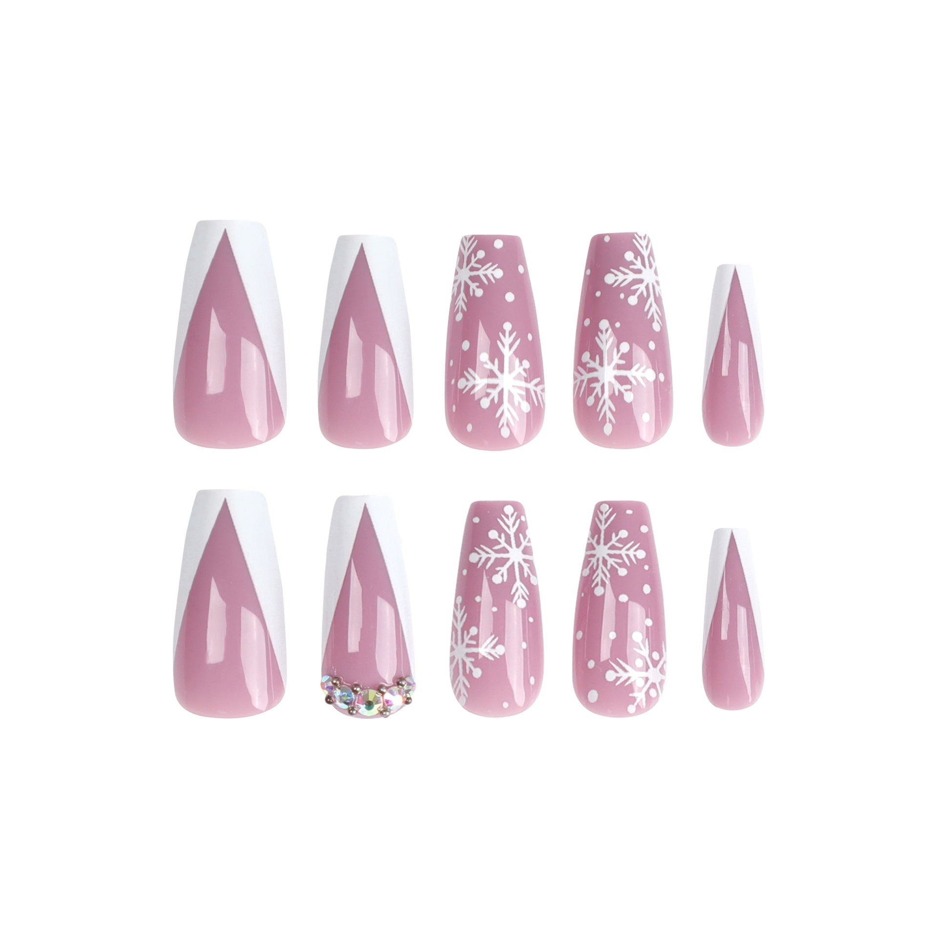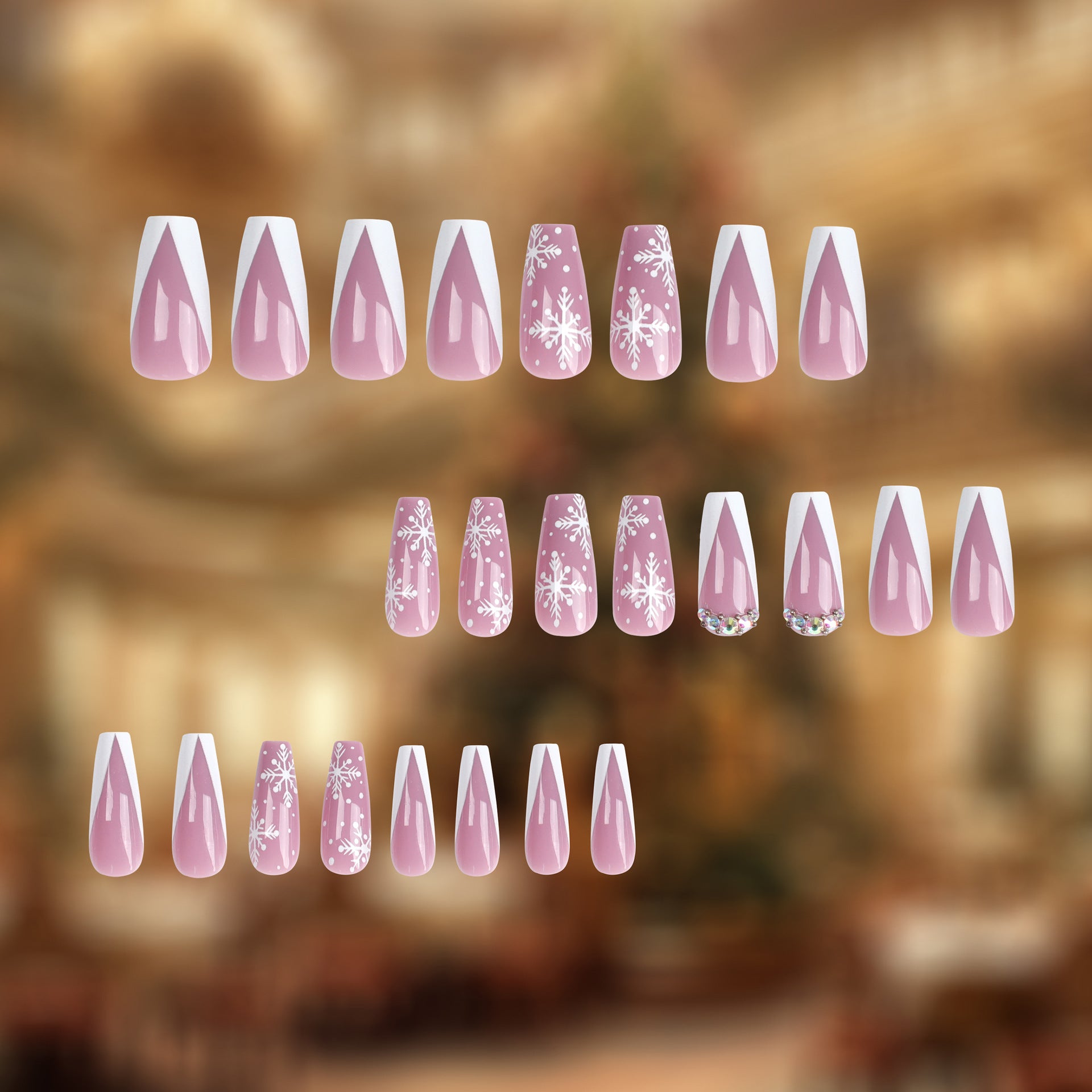 Snowflake Diamond Press on Nails 24Pcs Medium Squoval Nails