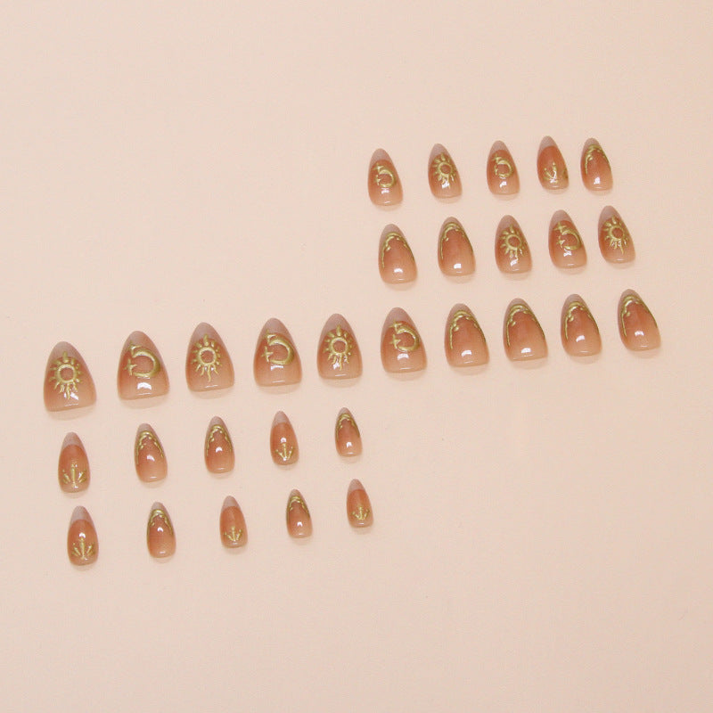 Sun French Press on Nails 24Pcs Medium Almond Nails