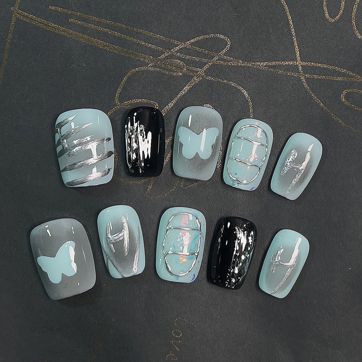Y2K Metal Butterfly(Handmade press on nails)/10Pcs Squoval Nails