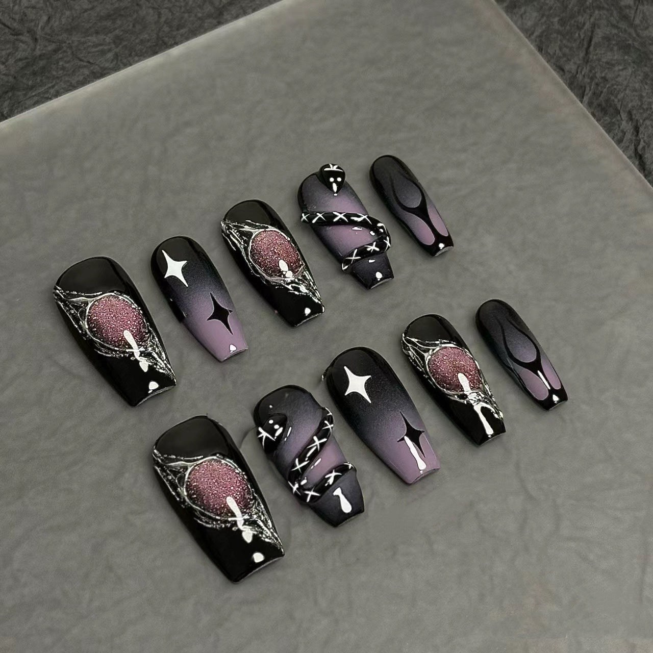 I ordered for my birthday and my package was so beautiful! My requests were taken into consideration, she was wonderful to deal with when I had a sizing issue- great customer service! All of the nails were beautiful and I couldn't wait to get a pair on the second I got my package lol considering it came from overseas, shipping was quick like 11 days... so what are you waiting for, click off of my review already and just ORDER FROM STARRY CAT 💜🫶🏻💜 you won't regret it 🥰